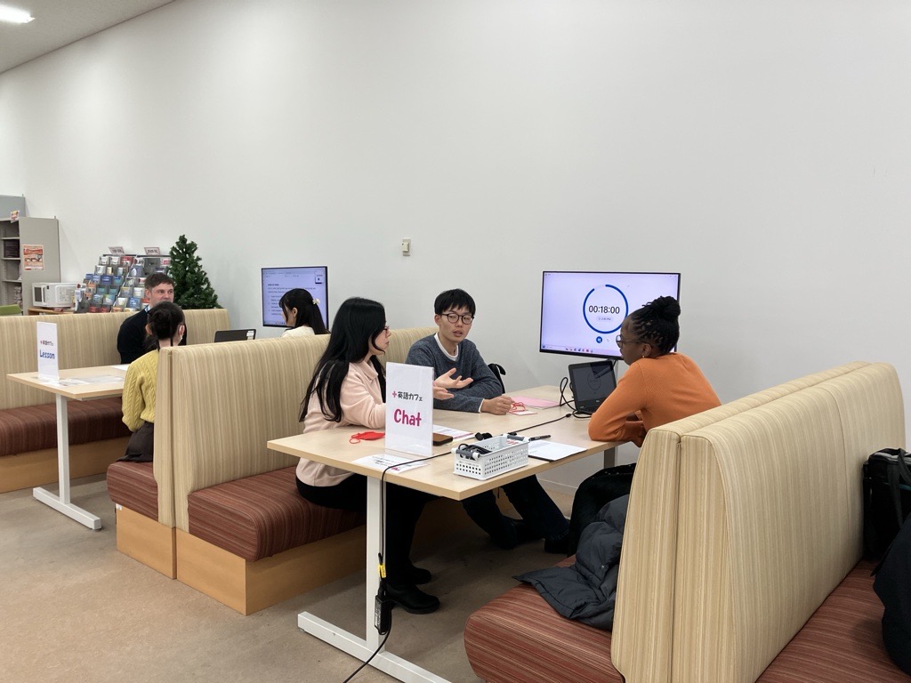 本学の「英語カフェ」は、世界的に展開する語学学校ベルリッツと連携して運営しています。週3回開催しており、講師は企業や大学で豊富な指導経験を持つプロフェッショナルです。明るくフレンドリーな指導スタイルで、初心者から上級者まで安心して学べます。さらに、初心者限定のチャットも開設しているので、英語に自信がない方も気軽に参加できます。ぜひ積極的にご利用ください。